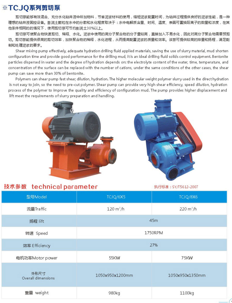 剪切泵石油鉆井液(泥漿)在配制和處理泥漿時,傳統(tǒng)的配制方法達不到直接水化搬土和聚合物所需要的高剪切力,因而需要較長的時間,我公司研制的剪切為用戶提供了快速配制和處理泥漿的新型設備,能滿足用戶配制和處理高性能泥漿的要求。