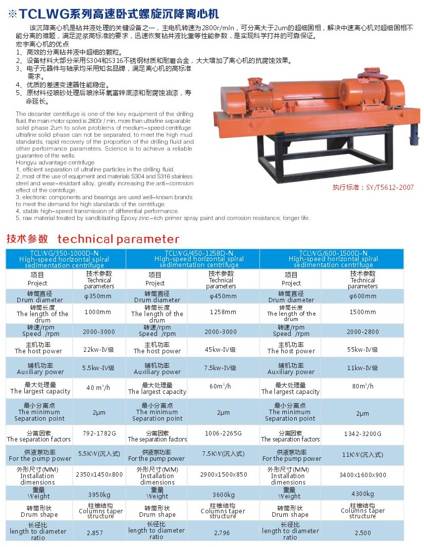 TCLGW系列高速臥式螺旋沉降離心機(jī)是鉆井液處理的關(guān)鍵設(shè)備之一,主電機(jī)轉(zhuǎn)速為2800r/min,可分離大于2um的超細(xì)固相,解決中速離心機(jī)對超細(xì)固相不能分離的難題,滿足泥漿高標(biāo)準(zhǔn)的要求,迅速恢復(fù)鉆井液比重等性能參數(shù).是實(shí)現(xiàn)科學(xué)打井的可靠保證。